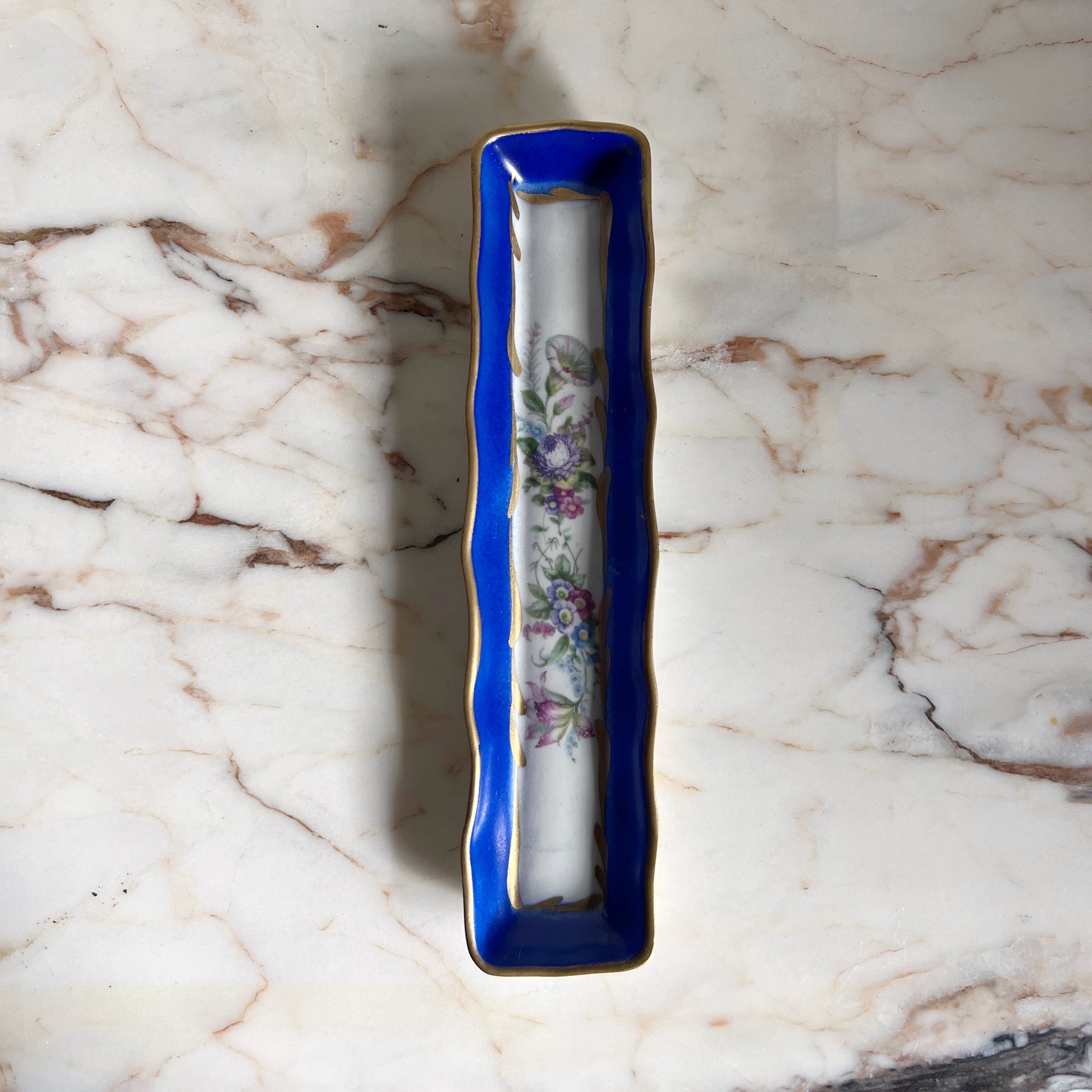 A lovely blue floral porcelain pen tray made in France. Perfect for pens and jewelry. Great condition.