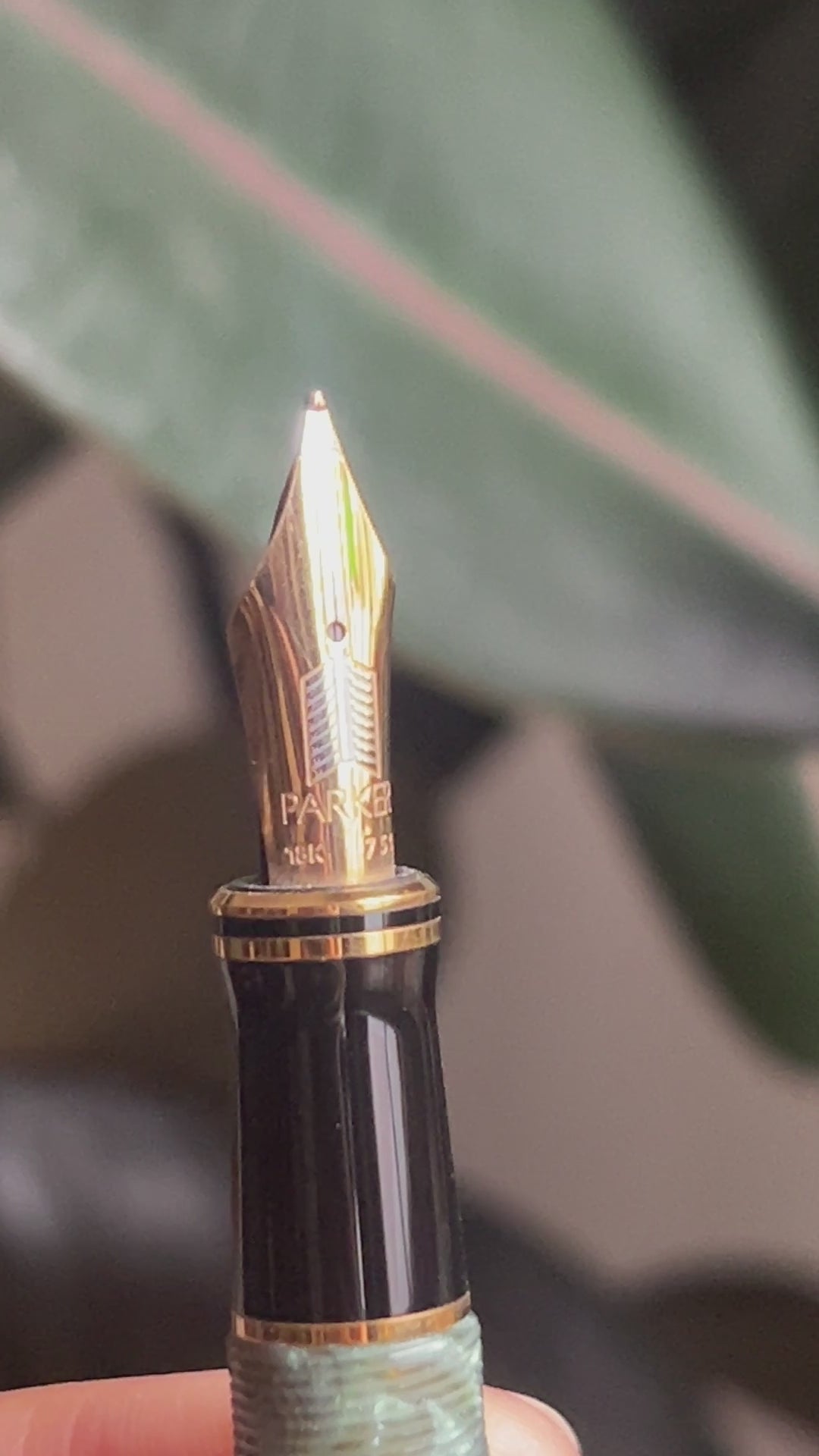Parker Duofold Fountain Pen Set in Marble Green 18kt Gold M Nib